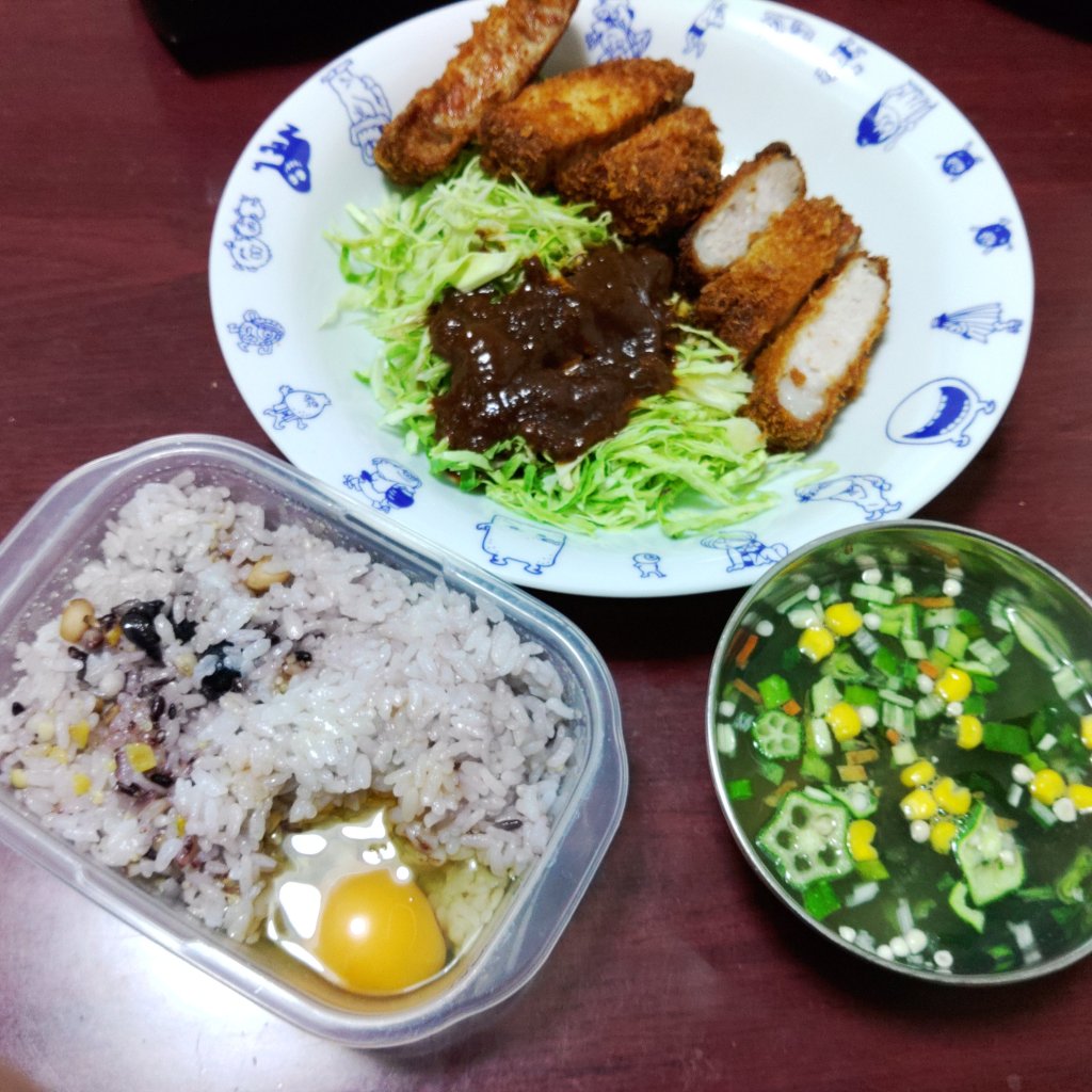 冷凍庫の中身をを少し減らしたくて豚カツにしました。金曜日に食べたばかりなのですが(^_^;)