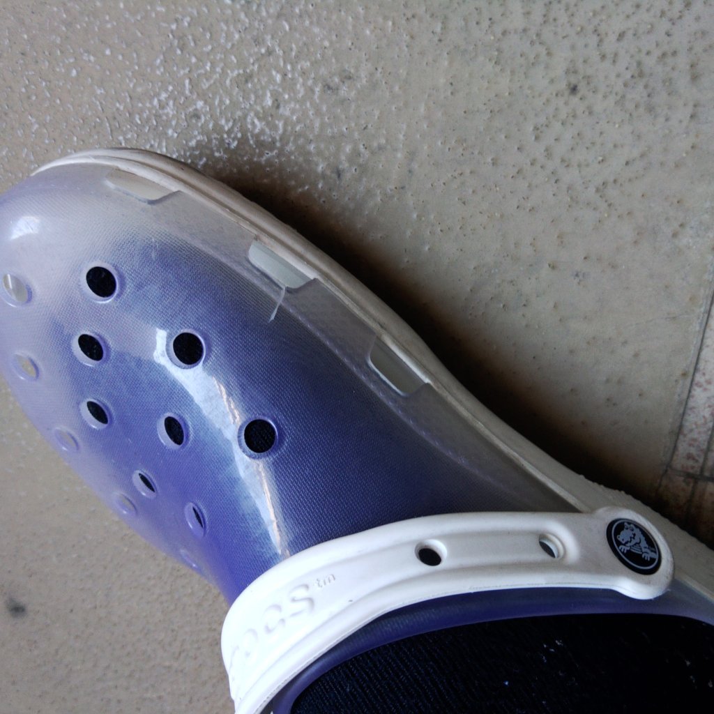 透明のクロックスは少し固いのかもしれません。割れてしまいました。