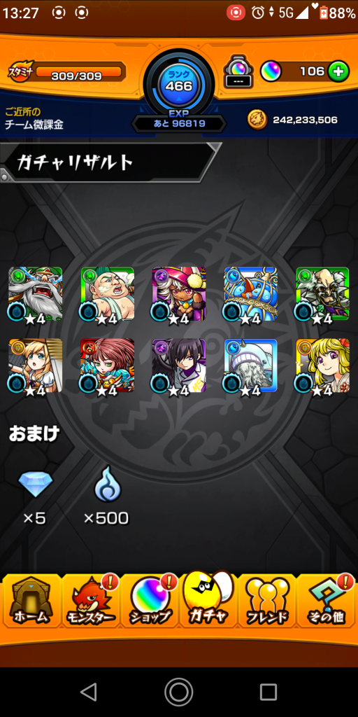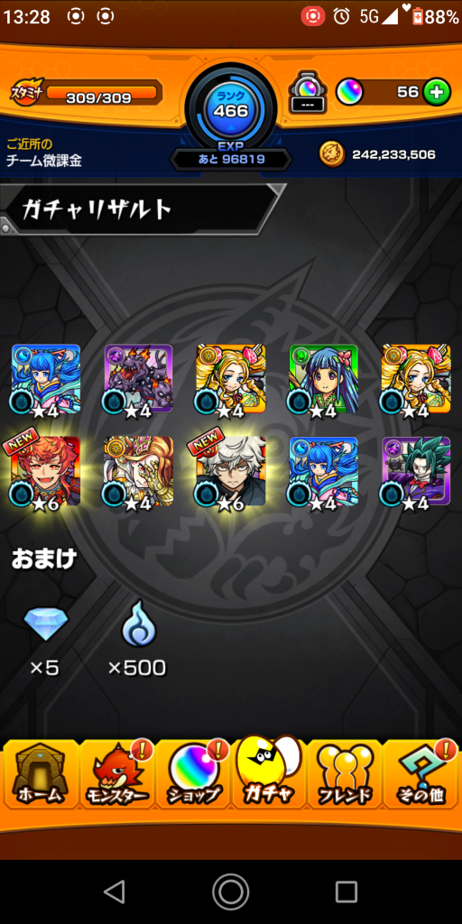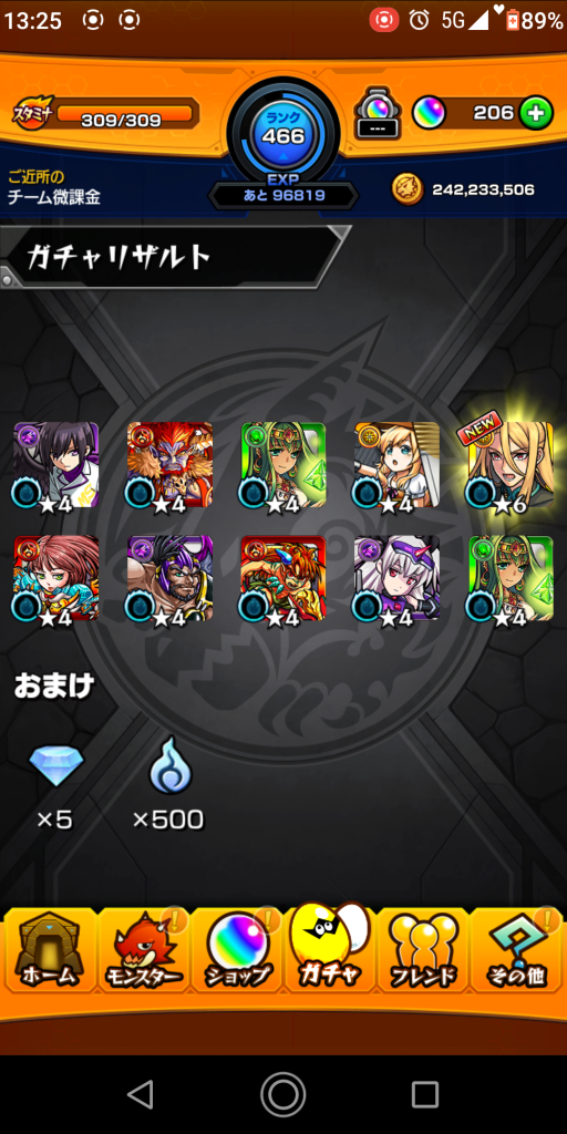 今回はコラボキャラは1体のみでした。獣神祭キャラは結構出ました。やはりなかなか出ませんね。
