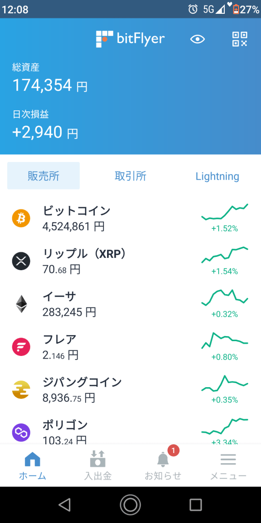 が450万を突破。今年1番の値上がりですね。どこまで上がるのですかね。史上最高値更新になると嬉しいのですが。