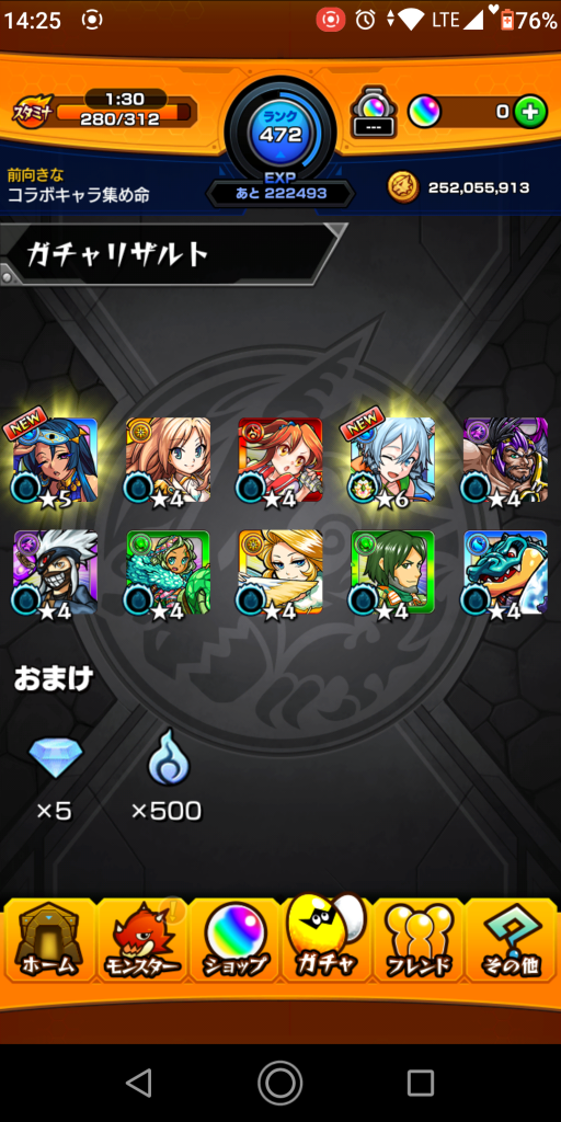 手持ちのオーブは170個ぐらいでした。30連分全部回しました。